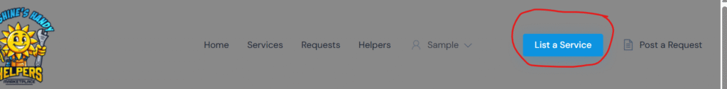 Step Two: Go to “List a Service”, the first time you go here it will have you complete your profile and base settings