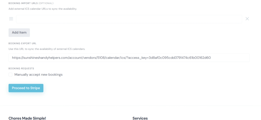 If you do not require manually accepting bookings, clients will be able to book and pay right away. - Finally, connect to Stripe so that you can get paid!!!